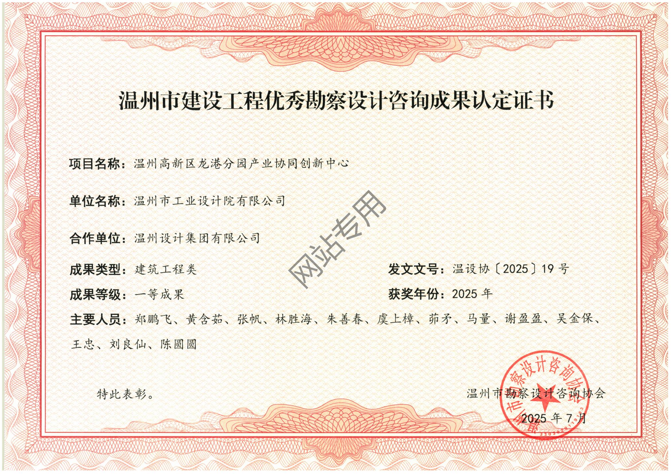 溫州高新區(qū)龍港分園產(chǎn)業(yè)協(xié)同創(chuàng)新中心 2025年度“甌江杯”建筑工程類一等獎(jiǎng)