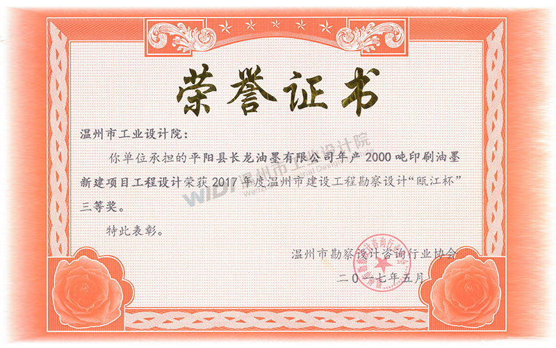 平陽縣長龍油墨有限公司年產(chǎn)2000噸印刷油墨新建項目工程設計 甌江杯三等獎