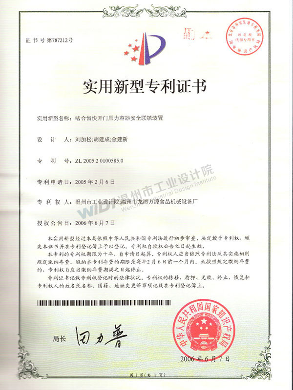 實(shí)用新型專利證書(shū)1