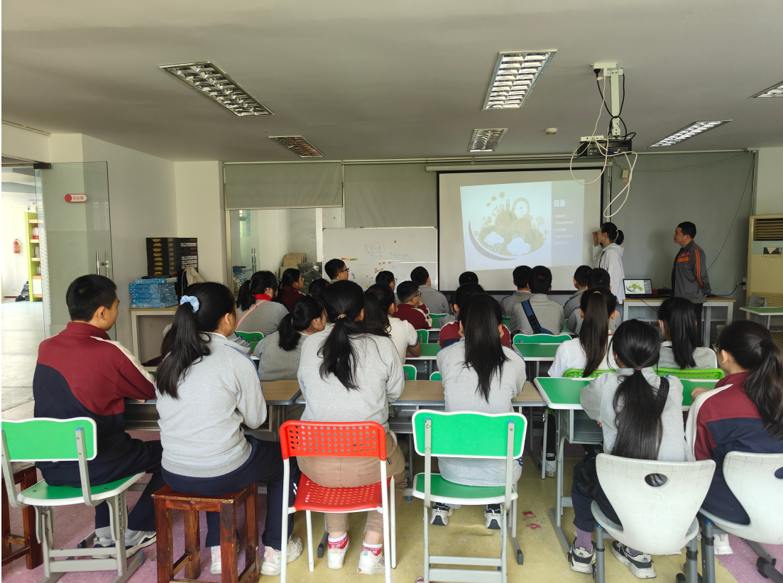 課堂上,黨員邱舒婷以“低碳同行、節(jié)能同心”為主題,用淺顯易懂的語言結(jié)合日常生活實(shí)例,向?qū)W生們講解了“能源的定義”、“環(huán)境污染的嚴(yán)重性”、“節(jié)能和環(huán)保的關(guān)系”等環(huán)保知識(shí),同時(shí)通過播放環(huán)保短片、展示環(huán)保圖片、開展互動(dòng)問答等方式使學(xué)生們更直觀、更深刻的認(rèn)識(shí)什么是低碳生活以及如何在日常生活中踐行低碳理念。